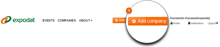 Only an authorized user can create a page of the organization. If you have an account on the service Expodat, you must sign up.