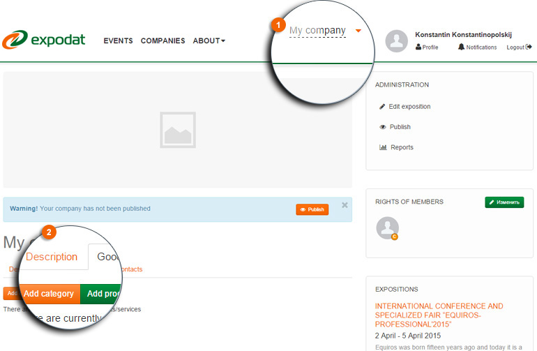 To publish a product or category you must click «Publish». After this item will be visible to everyone on the site and on the stand.